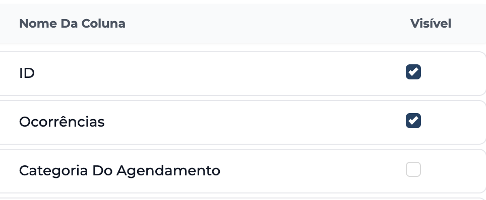 4. Altere a visibilidade dos campos que desejar clicando no botão de "check" ao lado de cada campo